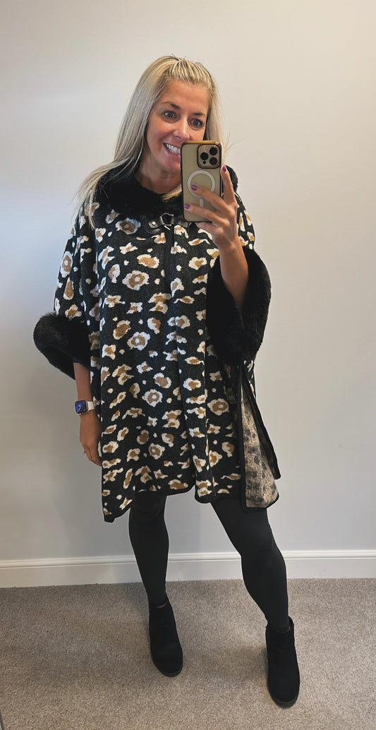 Black animal print soft faux fur cape brand new with tags RRP £45