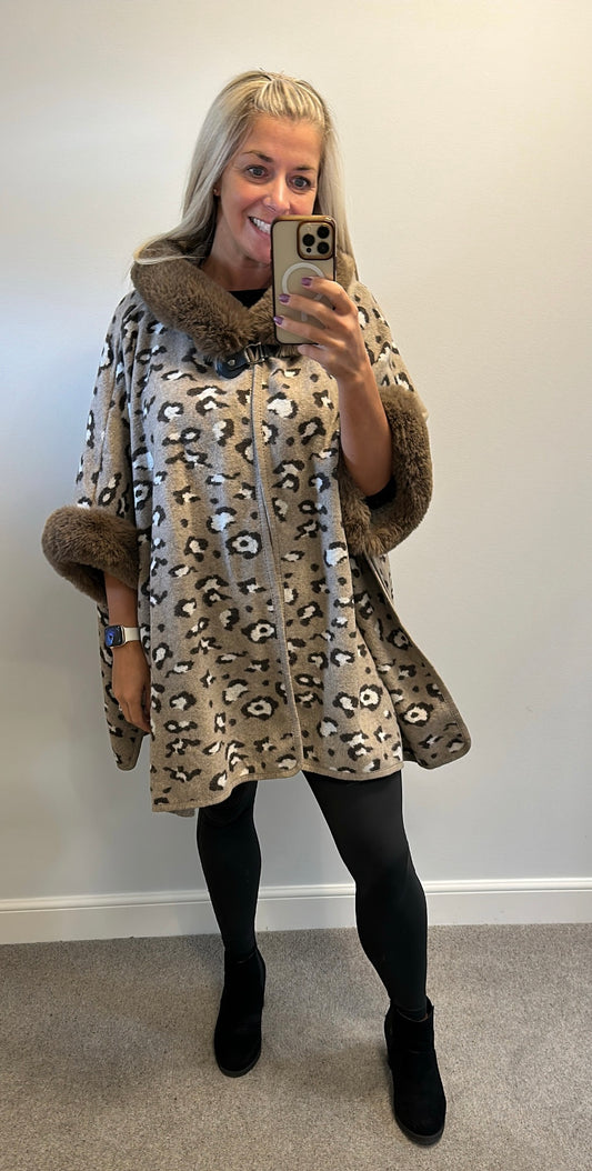 Cream animal print soft faux fur cape