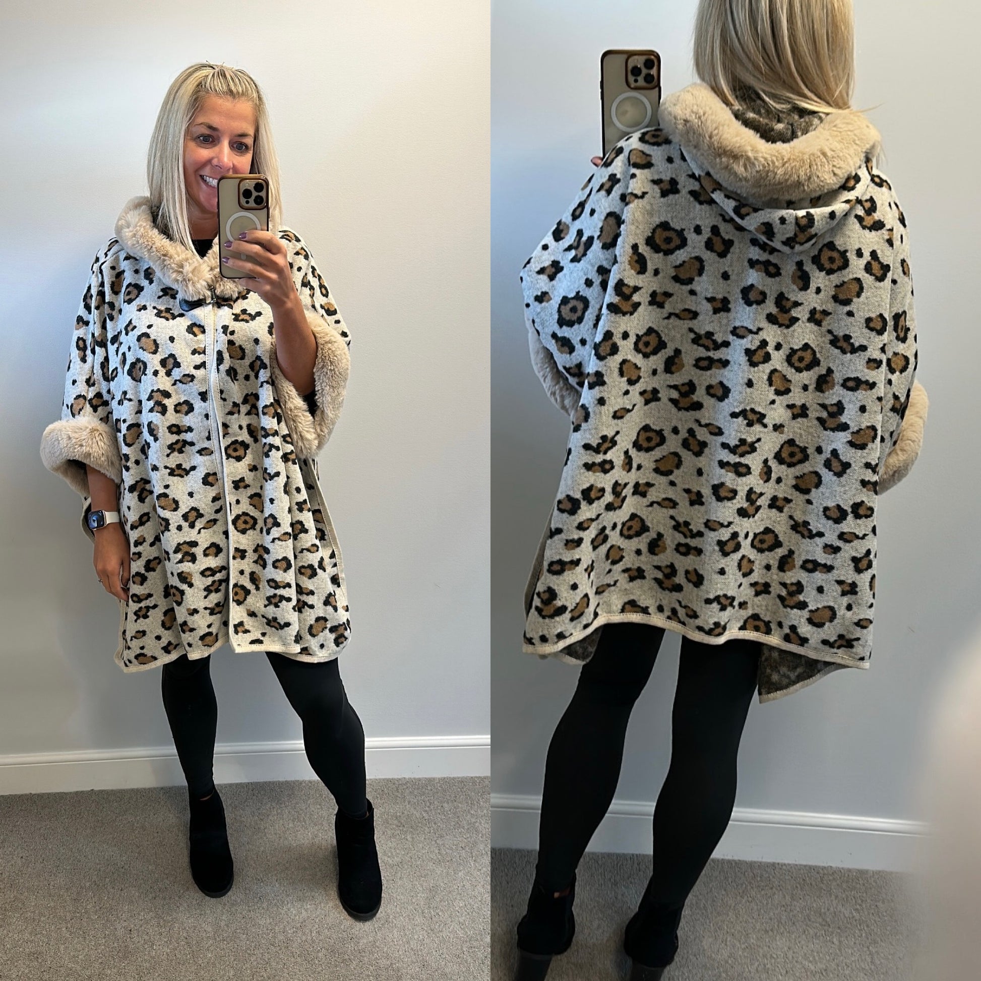 Cream animal print soft faux fur cape