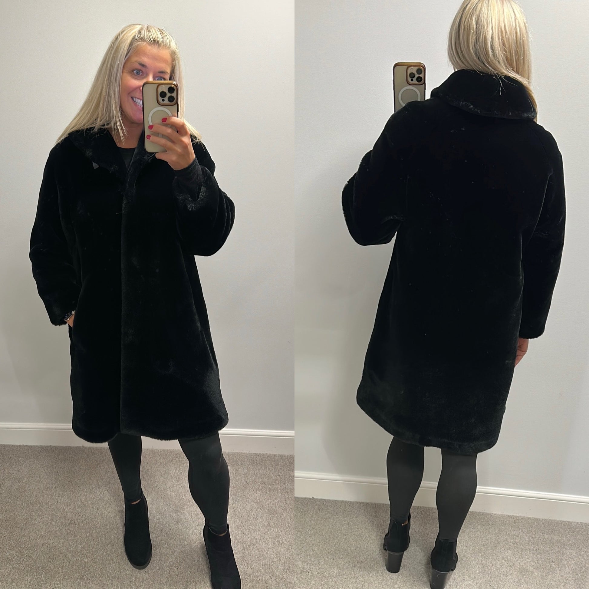 Donna DAMO Black faux fur jacket would fit upto size 12