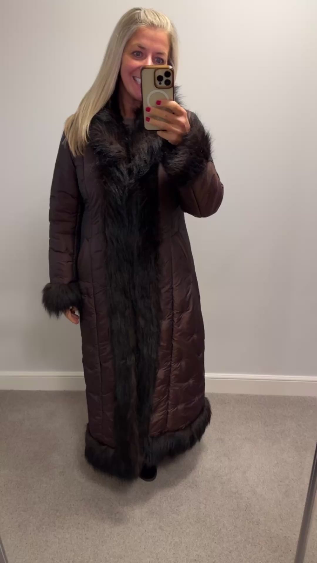 Hennes collection brown faux fur trim jacket size M would fit upto size 12