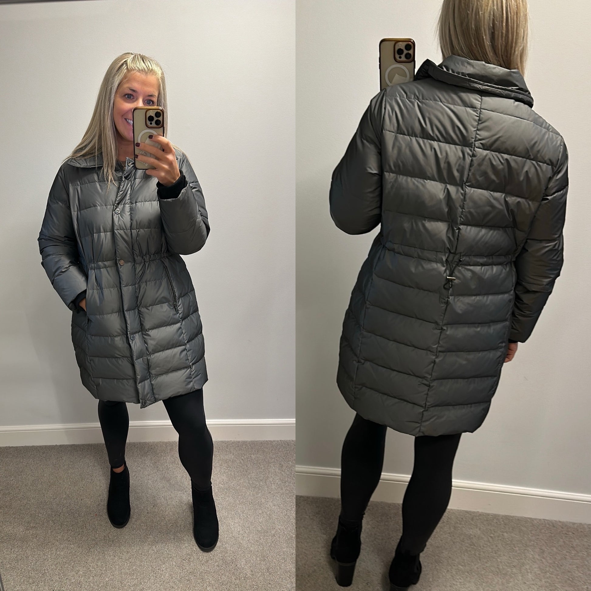 Peruna slate grey jacket size L would fit upto size 16 (no detachable hood)