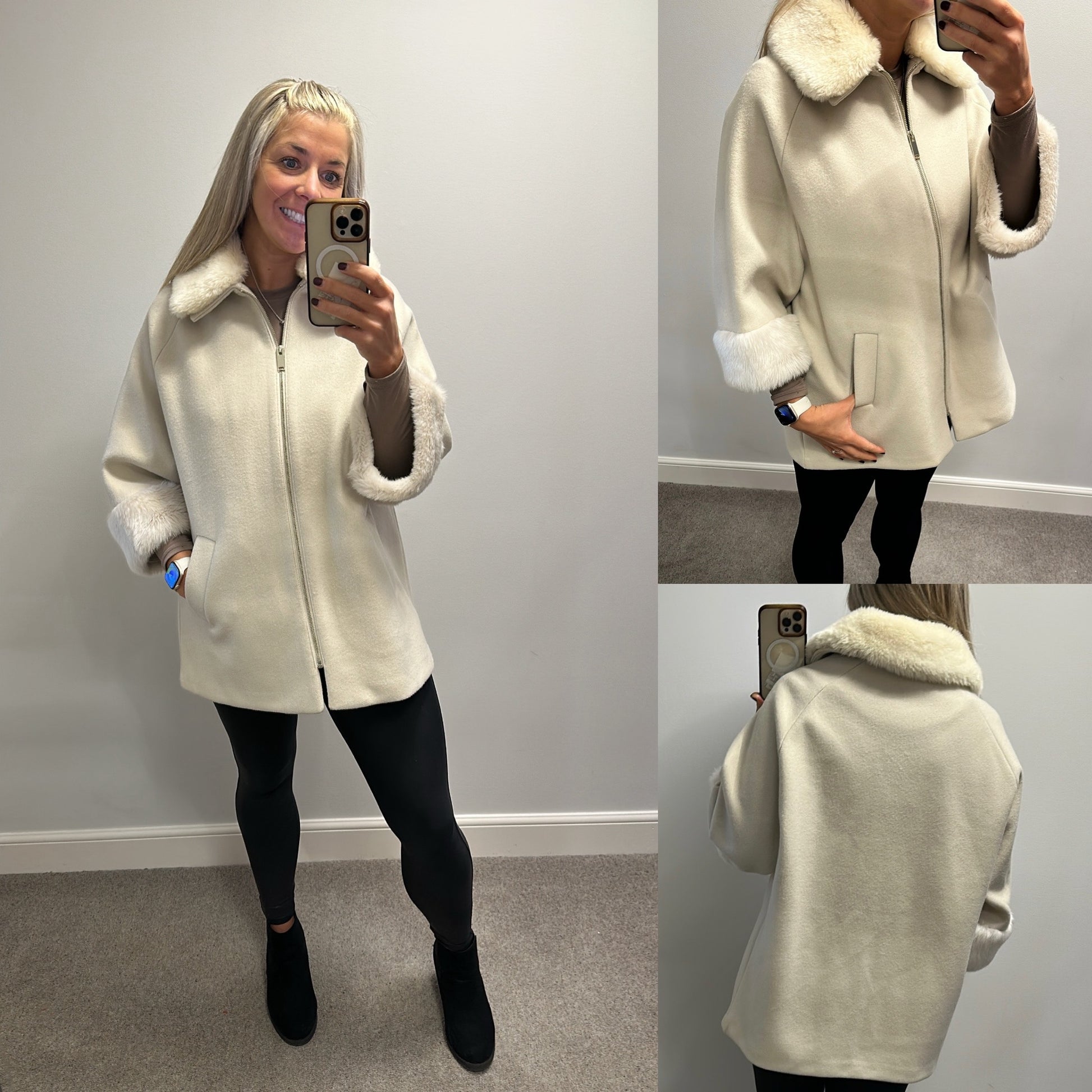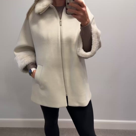 River island cream faux fur coat size 14 (oversized fit would fit upto size 16)