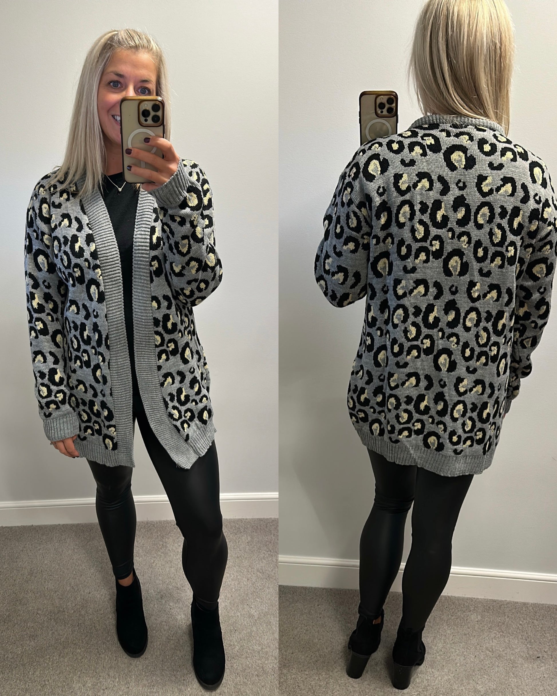 Want that trend Grey animal print cardigan one size fitting upto size 16